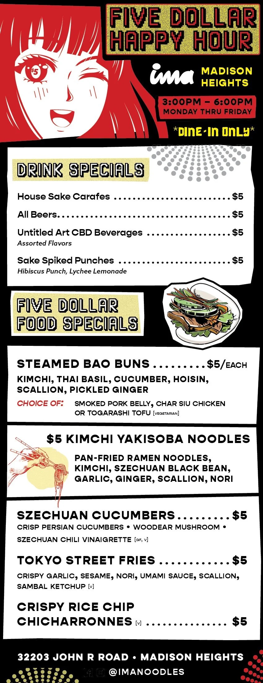 Madison Heights $5 Happy Hour ✽ Mon–Fri, 3pm to 6pm ✽ $5 Happy Hour ✽ Mon–Fri, 3pm to 6pm ✽ $5 Happy Hour ✽ Mon–Fri, 3pm to 6pm ✽